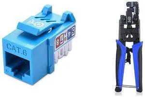 Cable Matters #1 [UL Listed] 25-Pack 10Gbps Rapid-Install Slim Profile RJ45 Keystone Jack with Punch-Down Stand, Blue (Model 180070) #2 1-Pack Rapid-Install Crimp Tool