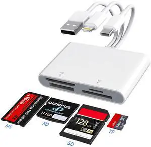 Memory Stick Pro Duo Adapter - XD Picture Card Reader for iPhone/USB C/A, 4 in 1 SD/TF/MS/XD Card Reader Adapter Sony Cybershot Card Reader Support iPhone 17/16/15/14/13/12/11/Pad/PC/Android/Laptop