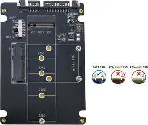 Specifications: Dimension: 100x70x7 mm. M.2 (NGFF) & mSATA to SATA III Adapter Card with Enclosure. Support SATA Reversion 3.2. PCI Express M.2 Spec. Revision 0.7, Version 1.0. PCI Express Mini Card Electromechanical Spec. 1.2. Thermal shutdown protection. Short circuit protection, In-rush current suppression.
