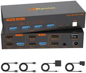 Dual Monitors HDMI KVM Switch 2 Computers 2 Monitors USB3.0 4K@60HZ 2 Port KVM Switcher for 2 PC/Laptop Share 2 Screen,Remote Control,EDID Supported