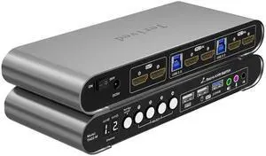 2 Computers 2 HDMI Monitors Matrix Automatic KVM Switch 4K@60Hz, Hotkey Switching, EDID, Digital Display and Aluminum Shell, USB 3.0 Hub Audio Microphone with Cables