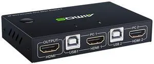 2-in, 1-Out HDMI KVM Switch/Distributor - 2 Ports USB Synchronizer, Multiple Computer Hosts Sharing A Monitor Printer, USB Keyboard Mouse Sync Controller, Plug & Play