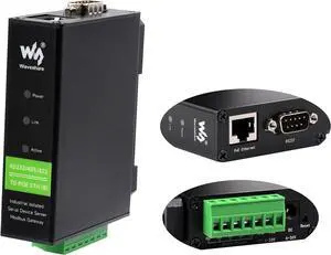 waveshare Industrial Isolated Rail-Mount RS232/485/422 Serial Server, RS232/485/422 to RJ45 Ethernet Module with POE, TCP/IP to Serial Converter, Modbus Gateway Support