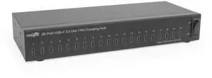 Coolgear 20-Port USB-C Charging Hub w/ PD, 5Gbps Transfer, Surge Protection, Sync & Charge for Classroom, Office & More