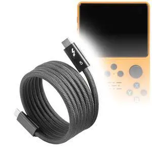 BoxWave Cable Compatible with Pomya Retro Handheld Game Console (3.5 in) - SnapWrap Thunderbolt 5.0 Cable (5ft 240W), Magnetic Self-Coiling Nylon Braided Retractable - Jet Black