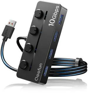 USB Hub, Multiport USB Splitter Adapter, 2 ft Long Cable USB 3.0 Hub, USB Extender for Laptop, PC, iMac, Surface Pro, MacBook, Mac Pro, Flash Drive, XPS, Mouse, HDD- Type: USB