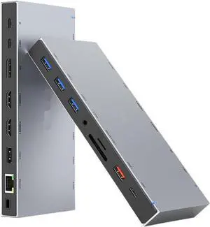 Laptop Docking Station,16 in 1 USB C Docking Triple Monitor,USB C Dock Station with 3 HDMI,PD 100W, USB 3.1/3.0/2.0,RJ 45 Ethernet,microSD/SD Card,Audio for Dell/LenovoInclude Power Adapter