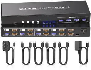 4 Port Dual Monitor HDMI KVM Switch 2 Monitors 4 Computers, 8K@60Hz 4K@120Hz Ultra HD with 4 Port USB 3.0 Hub, Effortlessly Share 1 Set of Keyboard and Mouse