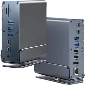 15-in-1 USB C Laptop Docking Station with 65W Power Adapter + 65W Portable Charger with Built in Cable and Wall Plug