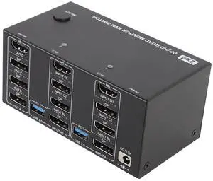 GOWENIC KVM Switch, 4 Monitors 2 Computers DisplayPort 8K 60Hz 4K 144Hz with 4 USB 3.0 Ports, for OS X OS Unix Computers (US)