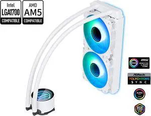 MSI MAG Core Liquid 280R V2 AIO Liquid CPU Cooler, 280mm Radiator, Dual PWM, ARGB Lighting Controlled by Software, LGA 1700 Ready / AM5 Compatible