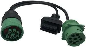 Aomoproing J1939 9-pin green male connector waterproof plug female docking to OBD2 16-pin female connector wire(J1939 CABLE 1PCS)