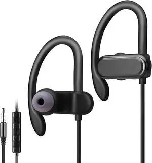 [Upgraded] Wired Earbuds Headphones with Secure Ear Hooks & Microphone for Sports Running Gym Workout Exercise - 3.5mm Connection for Smartphone and Computers, Noise-Isolation, CGS-W3