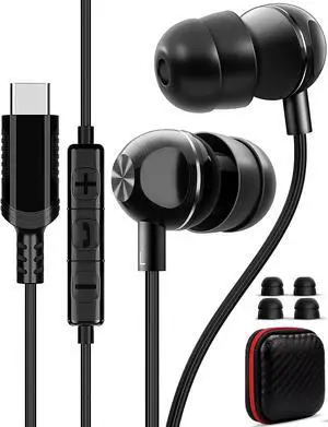 USB C Headphones for Samsung S24 Ultra S23 FE, Type C Earphones with Microphone HiFi Stereo Wired Earbuds Corded in Ear Bud for iPhone 16 15 Pro Max Plus Galaxy A35 S22 A53 Pixel 9 8 7 Pro OnePlus 12R