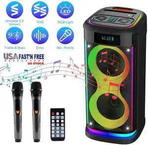 Waterproof Portable Wireless Speaker USB AUX FM Radio Stereo with 2 Microphones