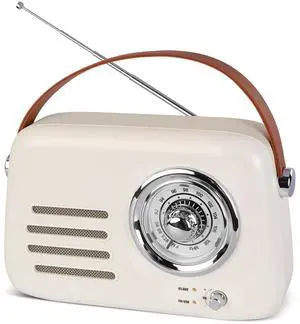 Vintage Bluetooth Speaker with FM Radio - Portable Wireless Boom Box, Over 20 Hours Battery Life Retro Radio (Bluetooth/FM/AUX/USB), Rich Bass, for Home, Office, Camping & Gifts (Beige)