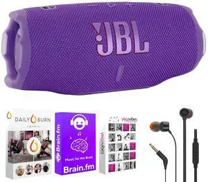 JBL Charge 6 Portable Bluetooth Wireless Speaker (Purple) with Fitness and Wellness Plus Software and JBL T110 in Ear Headphones