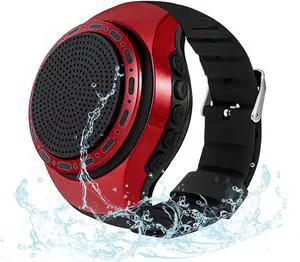 Wireless Wearable Waterproof Wrist Portable Bluetooth Speaker Watch with Multi Function FM Radio & MP3 Player & TWS & Selfie & Ultra Long Standby Time for Running, Hiking, RidingRed