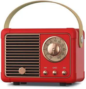 J-999 Retro Bluetooth Speaker,Vintage Decor,Mini Wireless Bluetooth Speaker,Cute Old Fashion Style Support USB/TF Card/AUX for Kitchen Desk Bedroom Office Party OutdoorExclusive Red