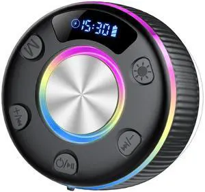 Bluetooth Shower Speaker, IP7 Waterproof Portable Bluetooth 5.3 Speakers with Suction Cup, Mini Wireless Speaker with RGB Lights Time Display, Loud Stereo Sound for Bathroom Beach Outdoor Party Gift