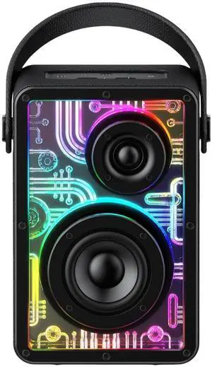 Portable Big Bluetooth Speakers with Light, Wireless with Subwoofer, FM Radio, LED Lights, EQ, Booming Bass, Bluetooth 4.2 Stereo Loud Outdoor/Indoor Retro, for Home, Camping, Travel, Black- Brand: Aesackir