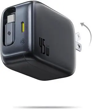 Baseus Retractable USB C Charger, 45W Dual Port Fast Charging Block with Foldable Plug, PD/PPS for Galaxy S24/iPhone 17/16/15 Series/MacBook Air/Airpods 4