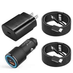 Samsung Super Fast Charger Type C Kit,25W PD USB C Wall/Car Charger for Samsung Galaxy S25/S24/S23/S22/Plus/Ultra/FE/Note 20/10/A71,2020/2018 Pad Pro/Air,with 2X USB C-to-C Cable(6.6ft)Brand: KTHallPart Number: XHD-PD25WCompatible Phone Manufacturer: Samsung Galaxy S25,S25+,S25 Ultra,S24,S24+,S24 Ultra,S23,S23+,S23 Ultra,S22,S22+,S22 Ultra,S10,Samsung Galaxy S10 5G,Samsung Galaxy S10 Plus,Samsung Galaxy S10e,Samsung Galaxy S9 S8,Samsung Galaxy S8 S9 Plus,Samsung Galaxy S8, S8+, S8 active, S9, S9+, Note10, Note10+/ Note 20, Note 20+, S10+ 5G, S20, S20+, S20 Ultra, S21, S21+, S21 Ultra, Google Pixel 4, Pixel 4 XL, Pixel 3, Pixel 3 XL, Pixel 2, Pixel 2XL, Pixel XL, Pixel 3A, Pixel 3A XL, Pixel, Pixel C Tab,Galaxy S9+Adapter: USB Type CModel #: 884582435863