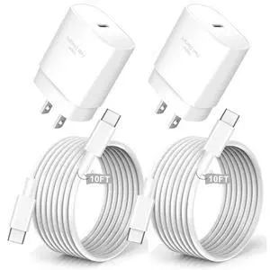 2Pack iPhone 17 16 Charger,Dual Port Fast Wall Charger Block with 10FT USB C to C Cable Cord Chargers Fast Charging for iPhone 17/17 Pro Max/17 Pro/iPhone Air/16Pro Max/16 Plus/15 Pro Max/15Pro/iPadBrand: BikeAnythingPart Number: LR-FC02Compatible Phone Manufacturer: Compatible with iPhone 17/iPhone 17 Air/iPhone 17 Pro/iPhone 17 Pro Max, iPhone 16/iPhone 16 Plus/iPhone 16 Pro/iPhone 16 Pro Max/iPhone 16e, iPhone 15/iPhone 15 Plus/iPhone 15 Pro/iPhone 15 Pro Max, iPad Air 13 inch(M3) 2025/iPad Air 11 inch(M3) 2025, iPad Pro 13 inch(M4) 2024/iPad Pro 11 inch(M4) 2024, iPad Pro 12.9 inch 6th/5th/4th/3rd Gen, iPad Pro 11 inch 4th/3rd/2nd/1st Gen, iPad Air 6th/5th/4th Gen, iPad Mini 6th/7th Gen,iPad 10th/11th Gen, Galaxy S25/S25+/S25 Ultra/S24/S24+/S24 Ultra/S23/S23+/S23 Ultra/S23 FE/S22/S22+/S22 Ultra/S21/S21+5G/S21 Ultra, Galaxy Z Flip 7/6/5/4/3/Z Fold 7/6/5/4/3, Galaxy Note 20/Note 10Color: WhiteModel #: 563899862152