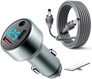Car Adapter for Starlink Mini, 3-in-1 Car Charger and DC Power Cable with Cigarette Lighter Adapter, 12V-24V Digital Display, QC 3.0 30W and PD 45W Ports, 16AWG Cable for Car Accessories(10FT)