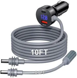 Starlink Mini Car Charger & Power Adapter, 3-in-1 Starlink Mini Cable 10FT with Digital Display & 12V-48V Cigarette Lighter Plug for Trucks, Cars, RVs - USB-C PD 40W & USB-A 35W Ports+Extension Cable