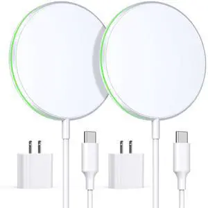 [Apple MFi Certified] 2Pack 6FT Mag-Safe Wireless Charger, 15W Fast Magnetic Pad with USB-C Block for iPhone 17/16/15/14/13/12 (Air/Pro/Max/Plus) & AirPods 4/3/2/Pro/Pro2 - Apple Wireless Charging KitBrand: Originais iPlacePart Number: 736250224872Compatible Phone Manufacturer: iPhone Air, iPhone 17 Pro, iPhone 17 Pro Max, iPhone 17, iPhone 16 Pro, iPhone 16 Pro Max, iPhone 16, iPhone 16 Plus, iPhone 15 Pro, iPhone 15 Pro Max, iPhone 15, iPhone 15 Plus, iPhone 14 Pro, iPhone 14 Pro Max, iPhone 14, iPhone 14 Plus, iPhone 13 Pro, iPhone 13 Pro Max, iPhone 13 mini, iPhone 13, iPhone 12 Pro, iPhone 12 Pro Max, iPhone 12 mini, iPhone 12, iPhone 11 Pro, iPhone 11 Pro Max, iPhone 11, iPhone XS, iPhone XS Max, iPhone XR, iPhone X, iPhone 8, iPhone 8 Plus, AirPods Pro 3, AirPods Pro 2, AirPods Pro 2 with MagSafe Charging Case (Lightning), AirPods Pro (1st generation) with MagSafe Lightning Charging Case, AirPods (3rd generation) with MagSafe Charging Case, AirPods with Wireless Charging Case (2nd generation)Color: white 15w & 6ft, 2-Set...Model #: 431784028330