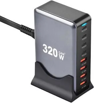 CZQEPMB USB C Charger Block, 320W 8-Port USB Fast Charging Station GaN 3 Charger PD 100w USB C Laptop Charger Compatible with MacBookPro/Air,iPad, DELL,iPhone,Samsung Galaxy, Android