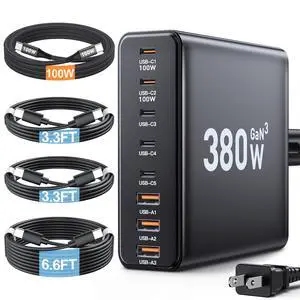 • Specifications: This USB C Charger block provides 6 charging wattage options with with 4 USB-C ports and 2 USB-A ports. The total output of this fast charging station is up to 220W, can charger all your devices at fast speed.