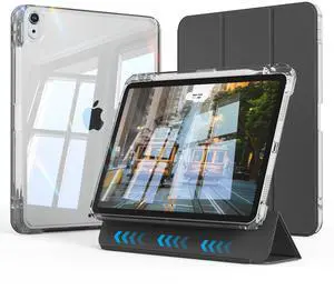 KTGGHG Hybrid Case for New iPad Air 11-Inch M3/M2 2025/2024, iPad Air 5th/4th Gen 2022/2020 10.9" with Pencil Holder, 2-in-1 Removable Sliding Cover, Thin&Lightweight, Auto Sleep/Wake, Black