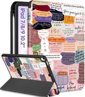 Uppuppy for iPad 9th/8th/7th Generation Case 10.2 Inch Girls Cute Kids Women Folio Smart Cover Pencil Holder Quotes Aesthetic Design Girly Kawaii Teen Unique Cases for iPad 7/8/9 Gen A2602 A2270 A2197
