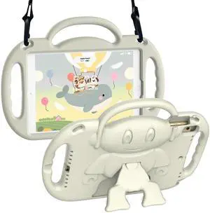 VICVOL Kids Case for iPad 9th/8th/7th Generation (10.2 inch,2021/2020/2019), Kids Case for iPad Air 3rd Gen 10.5"/Pro 10.5, Durable Shockproof Cover with Shoulder Strap/Handle/Kickstand, Light Grey
