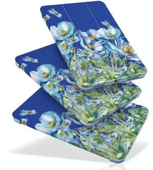 MecBevia Case Compatible with iPad Air 11 Inch M3 (2025) / M2 (2024), iPad Air 10.9 Inch 5th Gen (2022) / 4th Gen (2020), Hard PC Back Cover with Auto Wake/Sleep, Azure Bloom