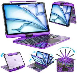 SIBEITU Clear Wireless Keyboard Case for iPad Air 11-inch (M3 2025/M2 2024) & iPad Pro 11-inch 4th 3rd 2nd 1st Gen, 7-Color Backlit with Multi-Touch Trackpad for 10.9" iPad Air 4th/5th Gen, Purple