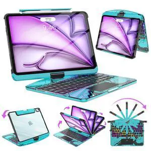 BABG Keyboard Case for iPad Air 13 inch(M3/M2)&iPad Pro 13(M5/M4),iPad Pro 12.9(6th/5th /4th/3rd Gen) Case with Keyboard,360° Rotatable,Toupad,Backlits,Pencil Charging-Green
