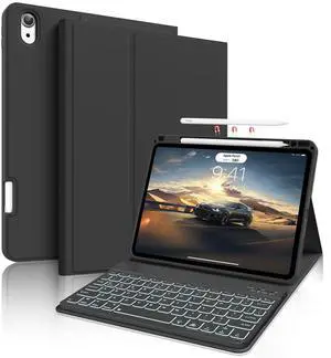 BQDIYOO Case for iPad Air 11-inch M3/M2 (2025/2024), Folio Cover with Pencil Holder for iPad Air 7th 6th 11"/Air 5th 4th Gen 10.9 inch Case with 7-Color Backlit Detachable Bluetooth Keyboard, Black