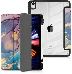 Batianda Hybrid Case for 11-inch iPad Air 2024 M2 Chip/iPad Air 5th/4th 2020 10.9 inch [Built-in Pencil Holder] Shockproof Cover with Clear Back Shell TPU Bumper,Flowers