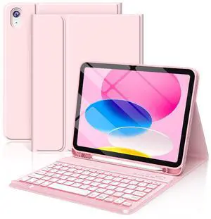 FUWANG for iPad A16 11th 10th Generation Case with Keyboard, Magnetic Detachable 7-Color Backlit Folio Cover Keyboard Case for iPad (A16) 11th 11 inch/10th Gen 10.9 inch with Pencil Holder, Light Pink