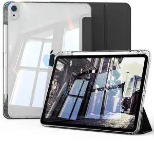 Soke for New iPad Air 13 Inch Case (M3 2025/M2 2024) with Pencil Holder, [Auto Wake/Sleep + Camera Protection] Shockproof Cover with Clear Transparent Back for Apple iPad Pro 12.9", Black