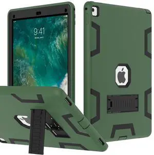 CCMAO Case for iPad 6th/5th Generation (9.7-inch, 2018/2017), iPad Air 2 Case (2014) with Kickstand, Hybrid Shockproof Protective iPad 9.7 Case, Dark Green+Black