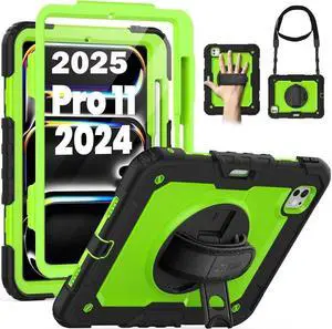 SEYMAC for iPad Air 13 Inch Case M3 2025/ M2 2024, Heavy Duty Shockproof Protective Case with Screen Protector, 360° Rotating Stand, Hand/Shoulder Strap and Pen Holder for iPad Air 13, Green