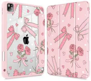 May Chen Case for iPad Air 11 (M3 2025 / M2 2024) 7th 6th, iPad Air 4 & 5 10.9 Inch 5th 4th (2022/2020) - Pencel Holder + Auto Sleep/Wake, Transparent Shockproof Back Cover, Pink Bows