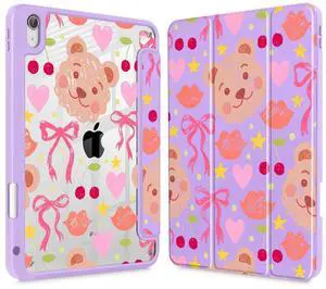 Mektron Case for iPad Air 11 inch (M3 2025 7th /M2 2024 6th), Compatible with iPad Air 10.9" (2022 5th Gen /2020 4th Gen), Buit in Pencil Holder with Shockproof Clear Shell, Teddy Bow-Purple