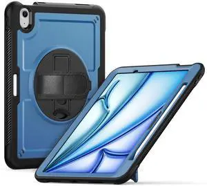 TNP Protective Case for iPad Air 6th M2 2024 11 Inch, 5th 4th Gen 10.9 inch and iPad Pro 4th 3rd 2nd Generation (2022 2021 2020 2018) w/Pencil Holder, Handle, Stand & Shoulder Strap, Blue