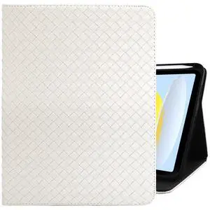 Cabreche Compatible with iPad (A16) 11th Generation 11 Inch 2025,10th Generation Case 2022,iPad 10.9 Inch Case Pencil Holder Soft Back Woven Leather Auto Sleep/Wake Cover Women Girls-White