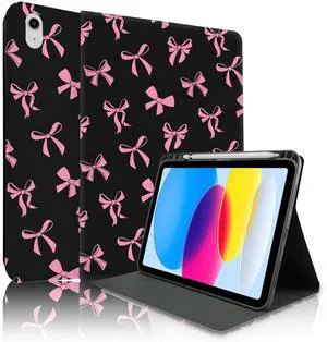 TopPerfekt Case for iPad 11th (A16) 11-inch 2025 / 10th Generation 10.9-inch 2022, Pink Bow Cute Chic Adorable with Pencil Holder for Kids, Boys, Girls, Anti-Slip, Anti-Shock, Black - Pink Bow